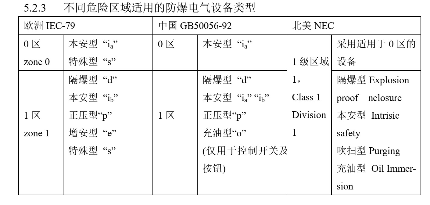 3选用隔爆型和本安型设备要注意与爆炸危险气体环境的级别相适应