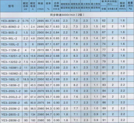 YE3系列高效率节能电动机电机效率指标达到IEC60034-30标准的IE3等级,即系列平均值为91.5%,比现在电动机的平均效率87%提高近4.5%,在IE2的基础上要提高1.5%。其他性能和噪声、振动等各项指标均符合相关的国家标准。YE3系列电机全部采用国际电机行业流行的冷轧硅钢片为新磁性材料,系全封闭,外扇冷式鼠笼型结构,具有效率高(效率达到欧洲EFF标准)噪音低,转矩高,起动性好、结构紧凑、使用维护方便等特点。整机采用F级绝缘,且按国际惯例的绝缘结构式评定方法设计,从而提高了整机的安全可靠性。防护等级达到了IP55。达到了国外同类产品的先进水平,是节能型的新产品。YE3系列电机可广泛应用于机床、风机、水泵、减速机、压缩机和交通运输,农业机械,食品加工、包装各类机械传动设备。YE3电机属于2级能效电机。