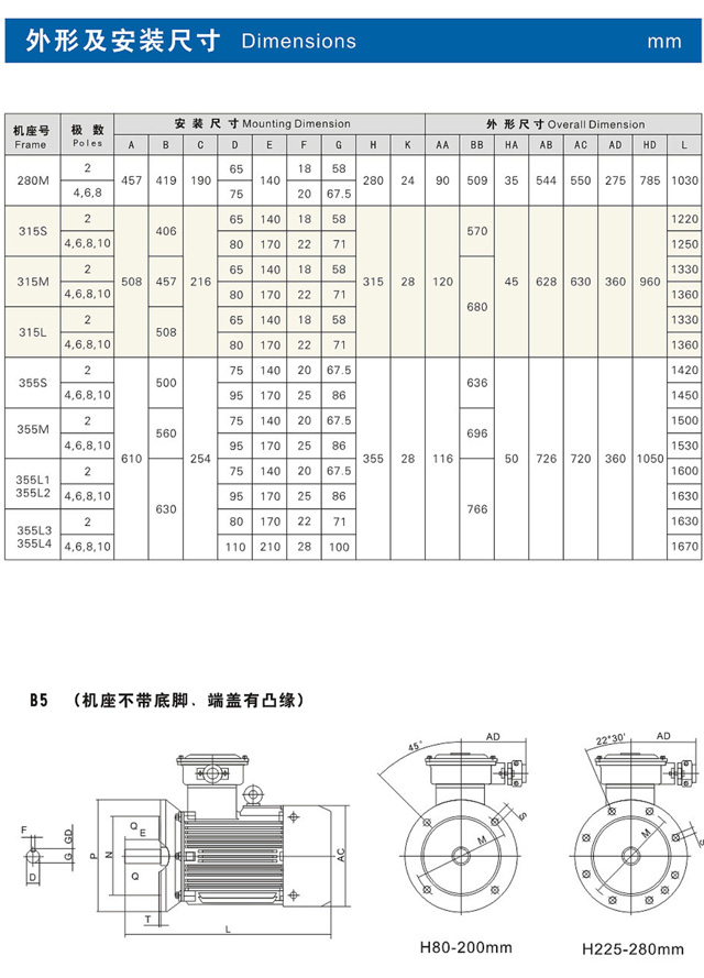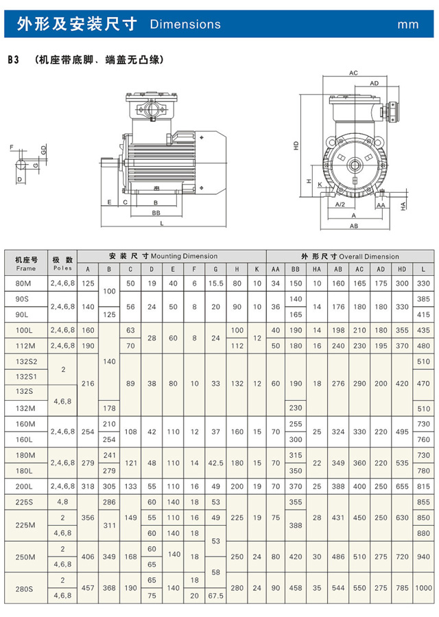 防爆电机型号:YBX3/YBX4(三级或二级能效)
